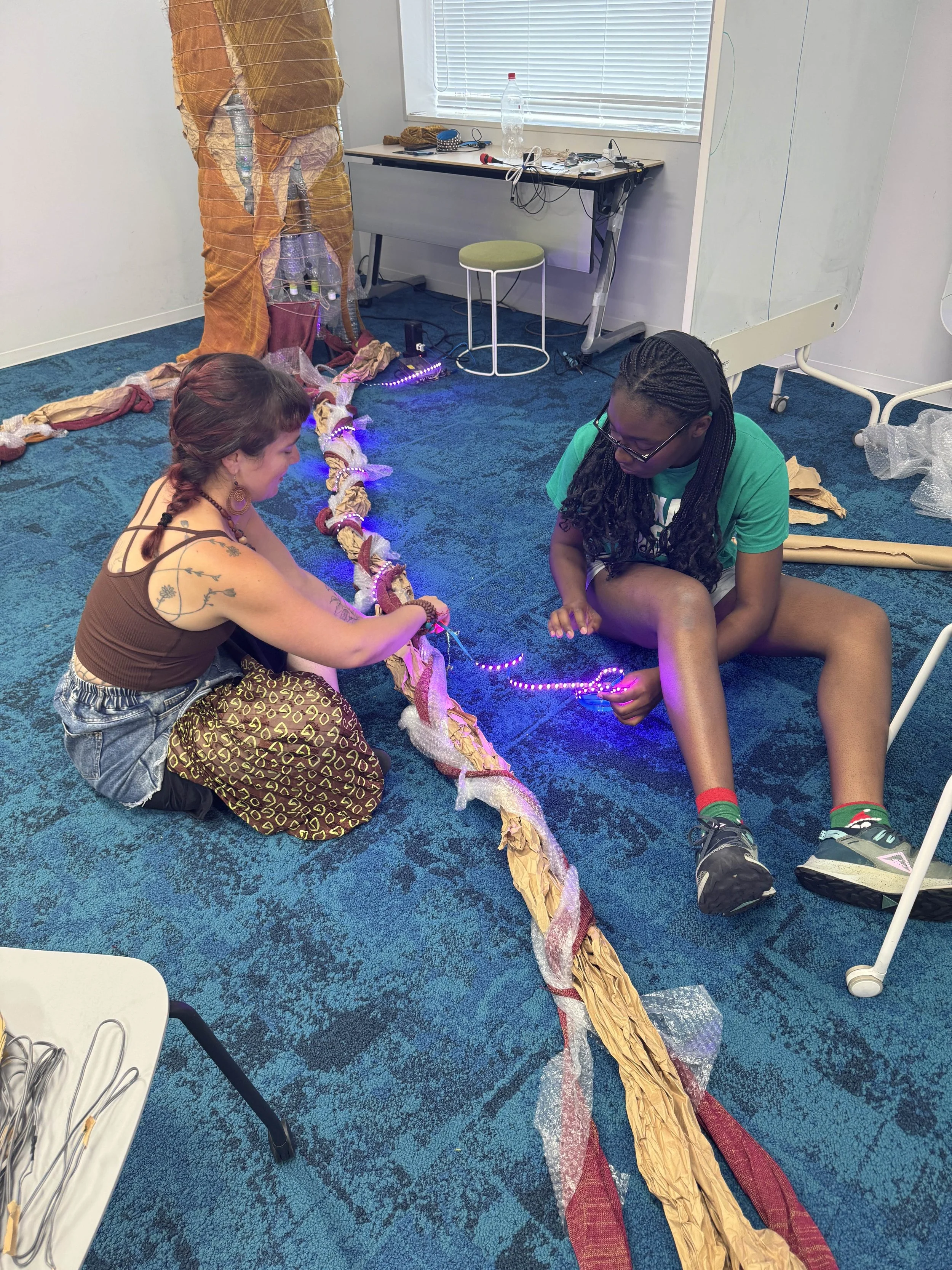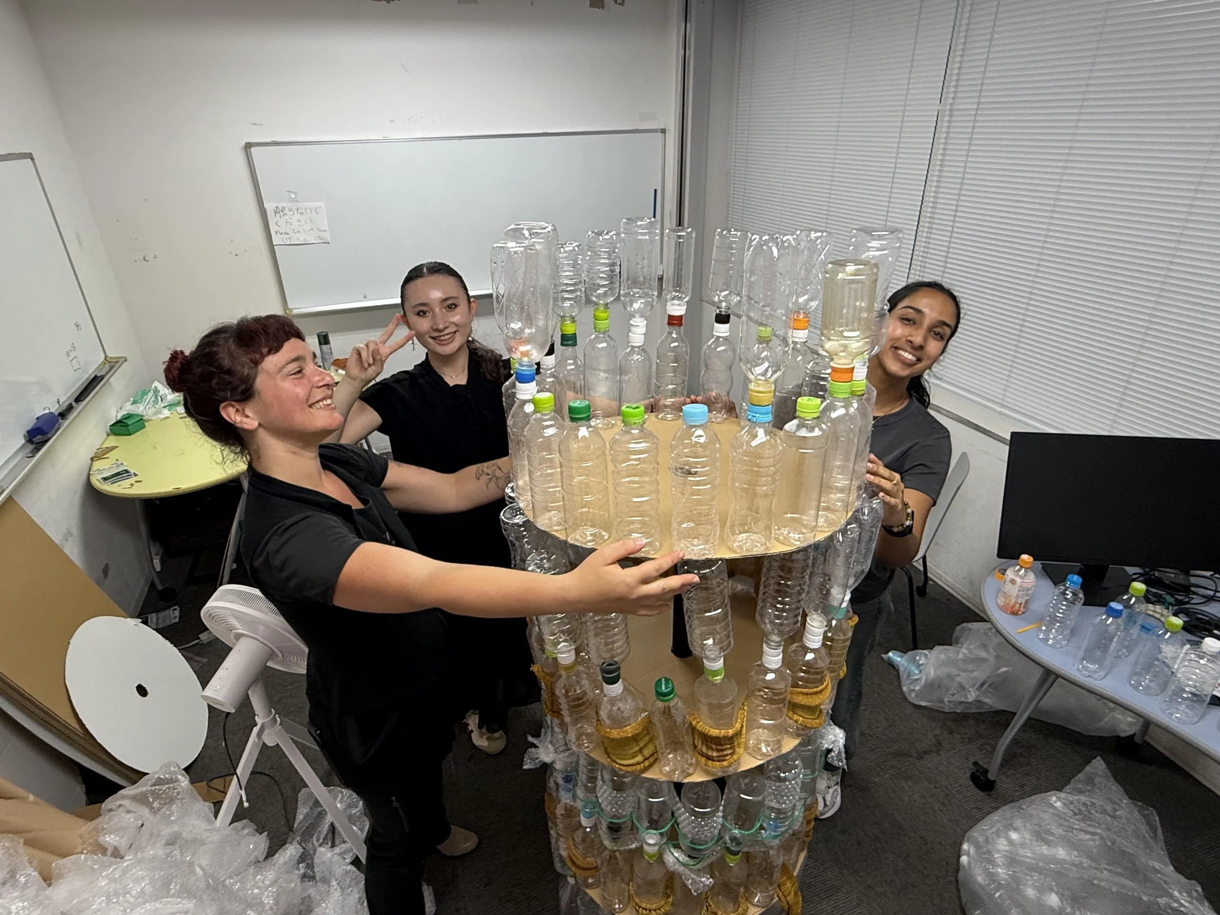 We built the tree out of waterbottles, cardboard, and reused fabric from a previous Keio University' Samcara lab project.
